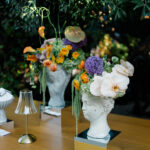 After the ceremony, guests transitioned into cocktail hour in the courtyard, moving easily between garden drinks and The Fig House’s colorful interiors. This seamless shift from one part of the day to the next was intentional. We created flow points that encouraged movement without forcing it, allowing guests to settle in and enjoy the night at their own pace.
