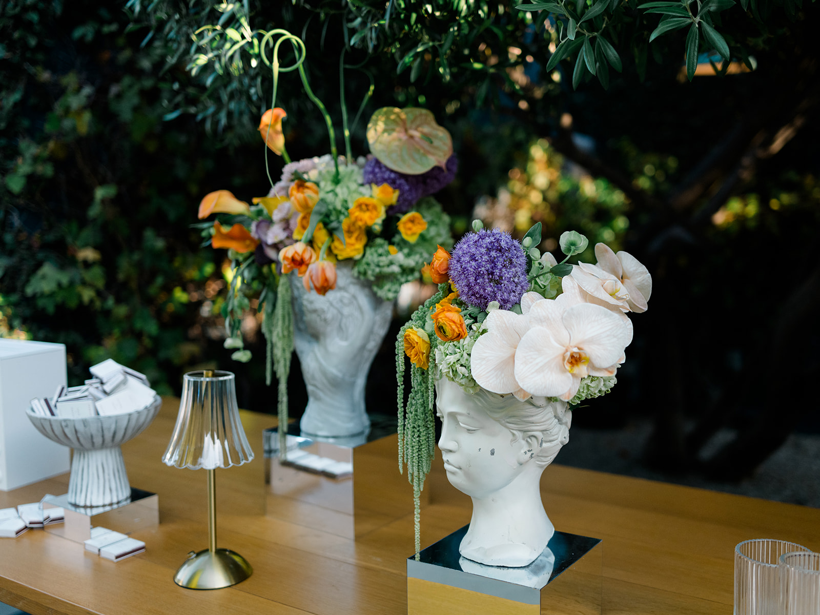 To complement the Fig House aesthetic, we curated a mix of modern and vintage-inspired rentals from Archive Rentals. Each piece was selected to enhance the design, not compete with it. Sleek signage and artful florals framed the event, creating a layered, editorial feel that was bold but never overwhelming.