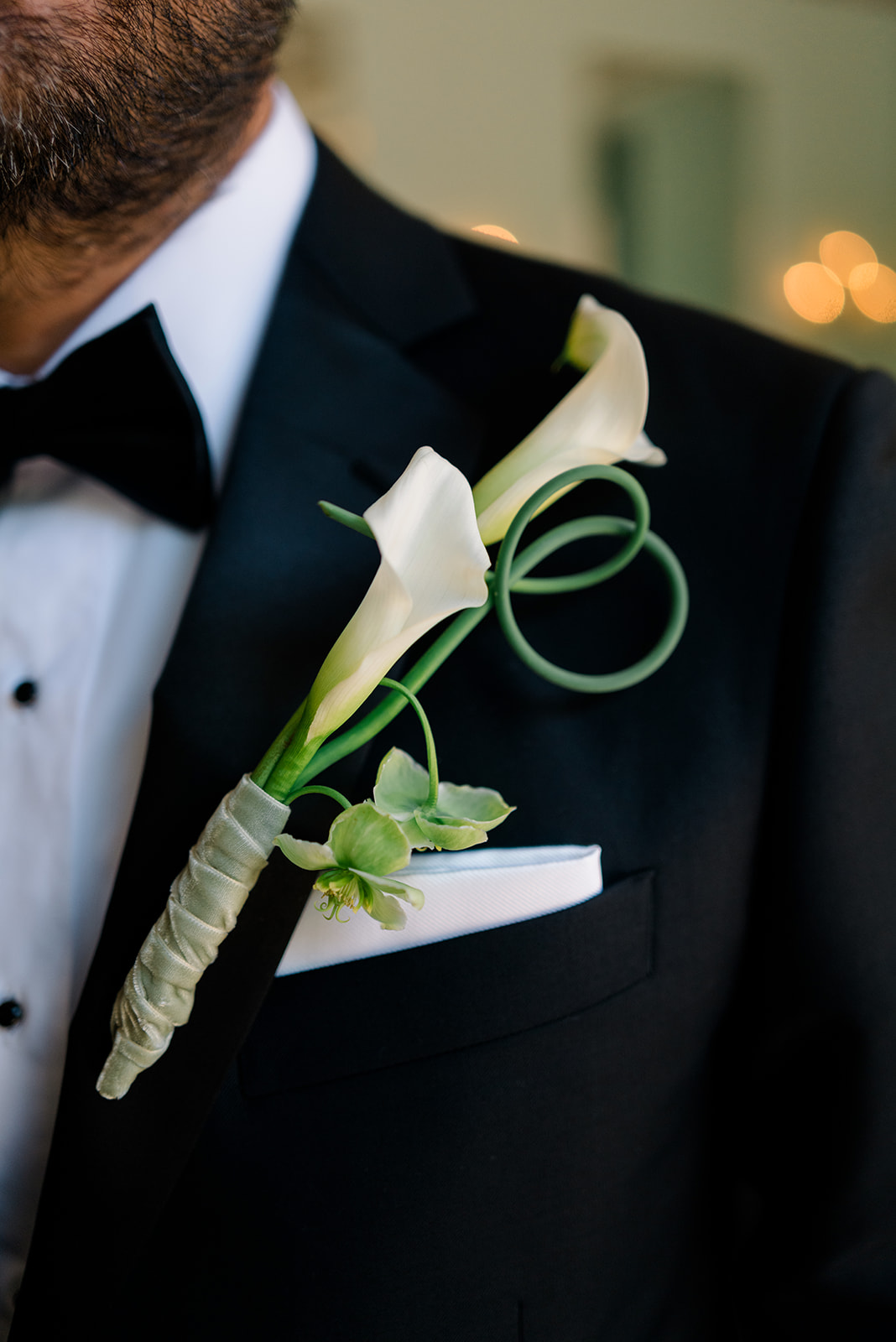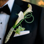 The couple’s personal styling also reflected this approach. Laura wore a two-look ensemble from Anthropologie’s BHLDN line—a bridal skirt and two separate tops for ceremony and reception. The look was chic, unfussy, and completely aligned with the venue’s vibe. Charlie kept it classic in a Brooks Brothers suit, staying sharp but approachable.