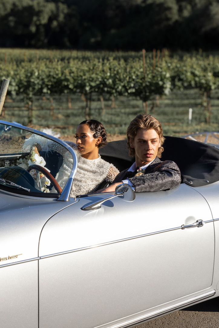 This Monserate Winery wedding editorial was designed as a modern spring story—sculptural, fashion-forward, and intentionally restrained.