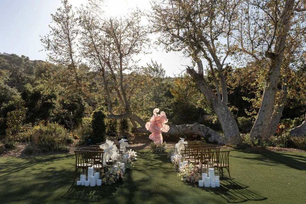 To begin, we reimagined the ceremony design by removing every other chair. As a result, the aisle felt airy, woven, and effortlessly editorial.