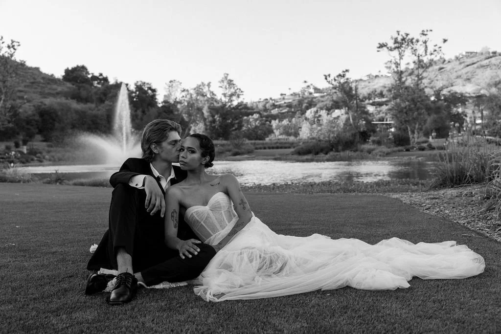 Finally, we created a softer contrast to the architecture and scale of the estate. We styled a lakeside picnic scene that felt romantic, layered, and quiet—almost like the couple slipped away from the party for something private, slow, and beautiful.